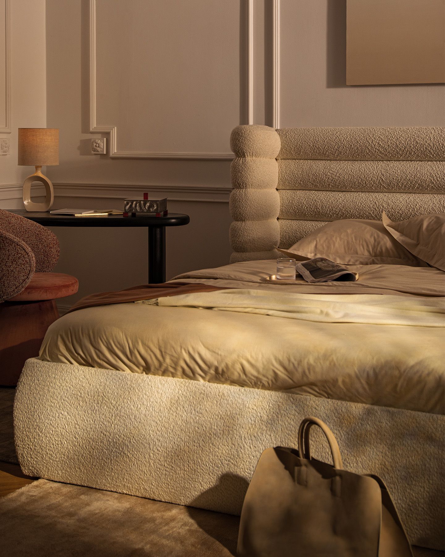 Disponible en 3 tissus exclusifs et plus de 25 coloris soigneusement sélectionnés, le lit Mount est conçu pour s'adapter parfaitement à votre style de vie et à votre espace.