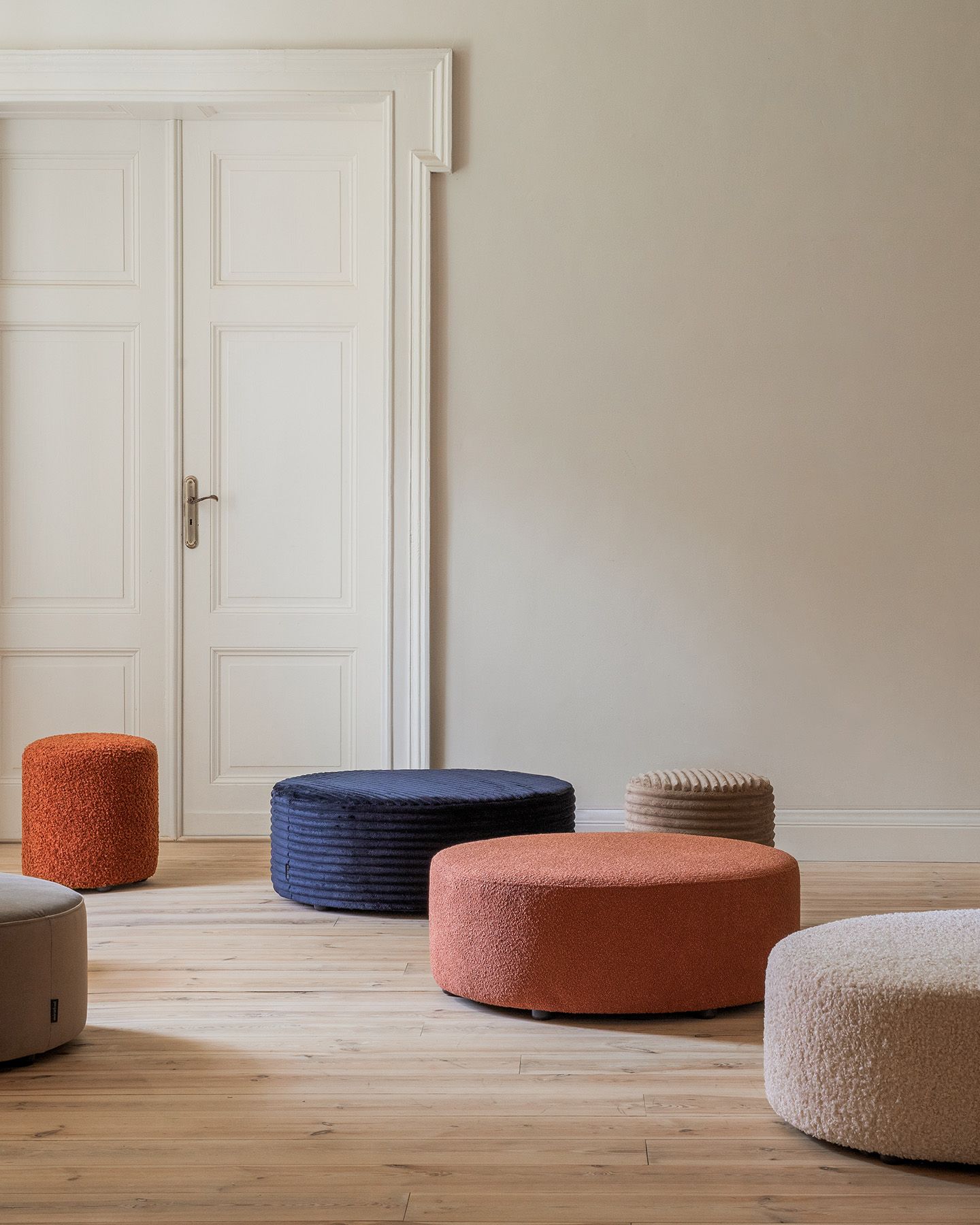 Pouf en velours, chenille ou velours côtelé, 90 cm