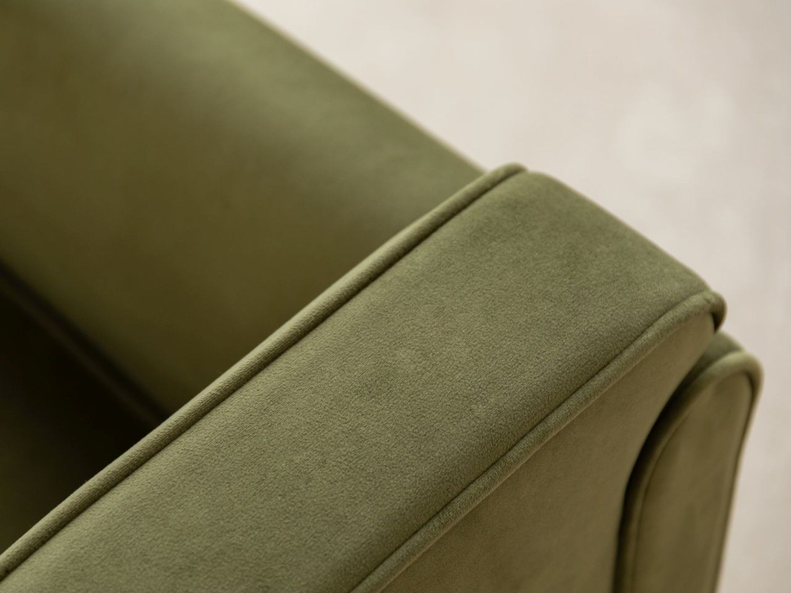 Les passepoils soulignent les formes arrondies du fauteuil. Les coutures précises donnent à chaque élément une allure raffinée et invitent à la détente.