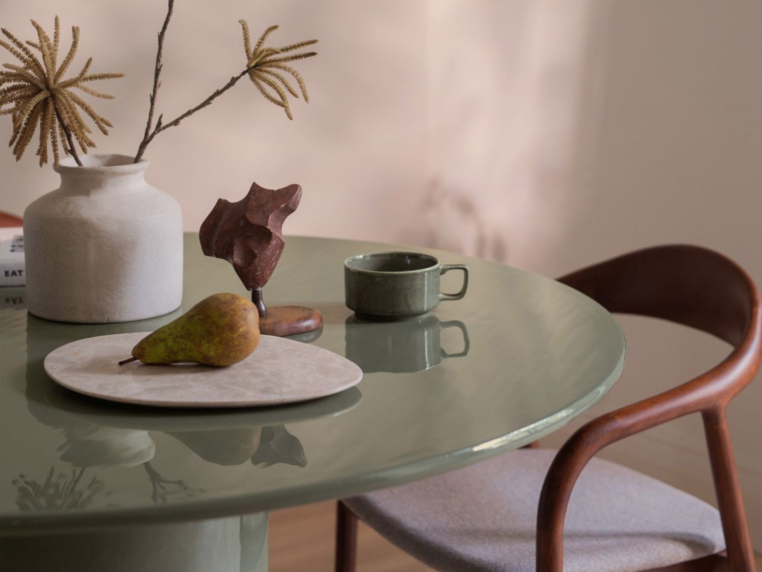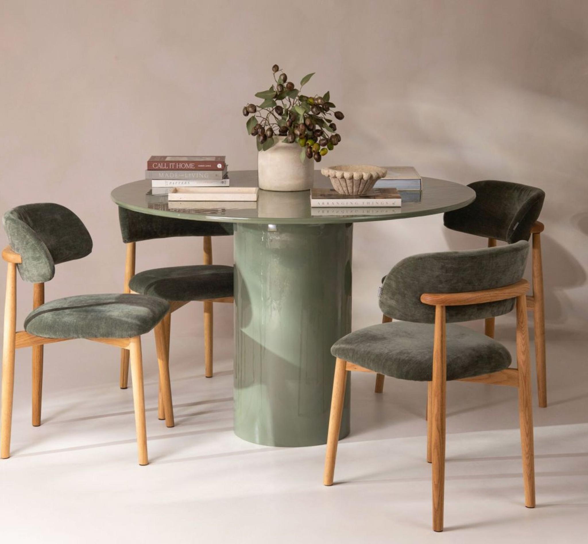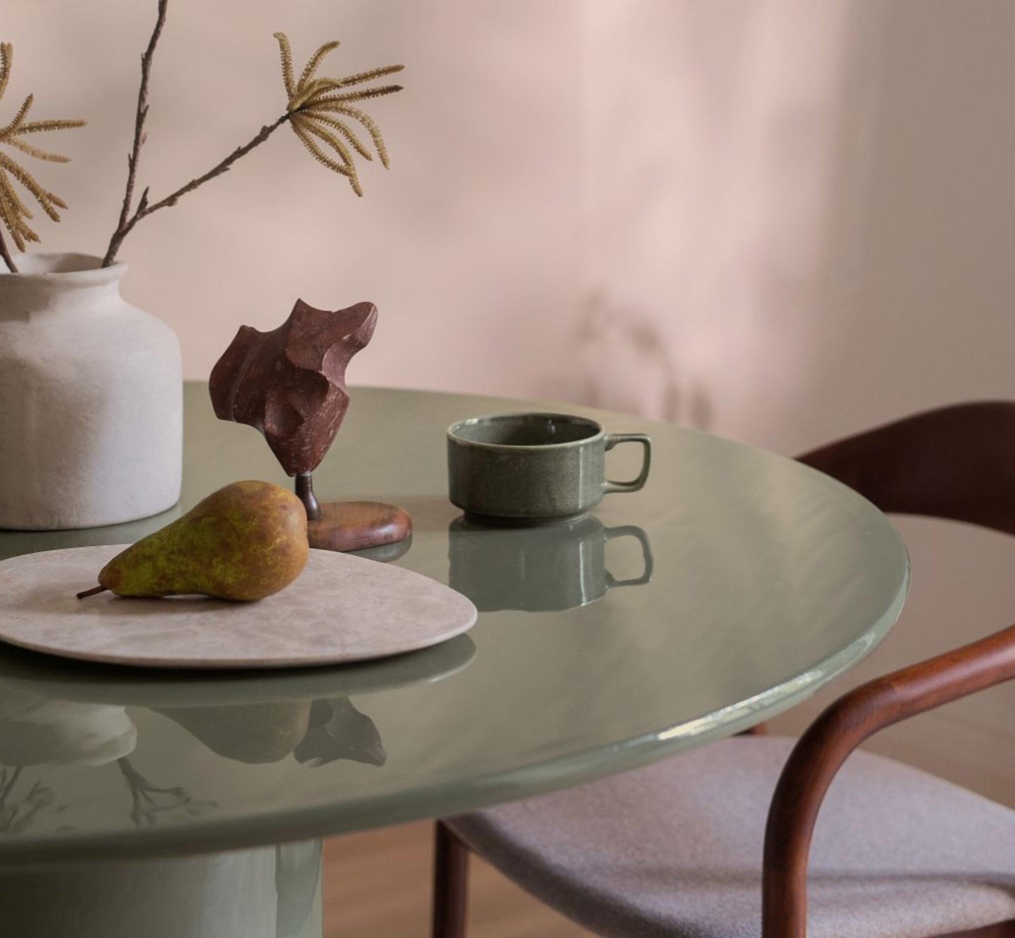 La table est entièrement laquée et possède une surface brillante. Son design audacieux en fait une pièce maîtresse unique.