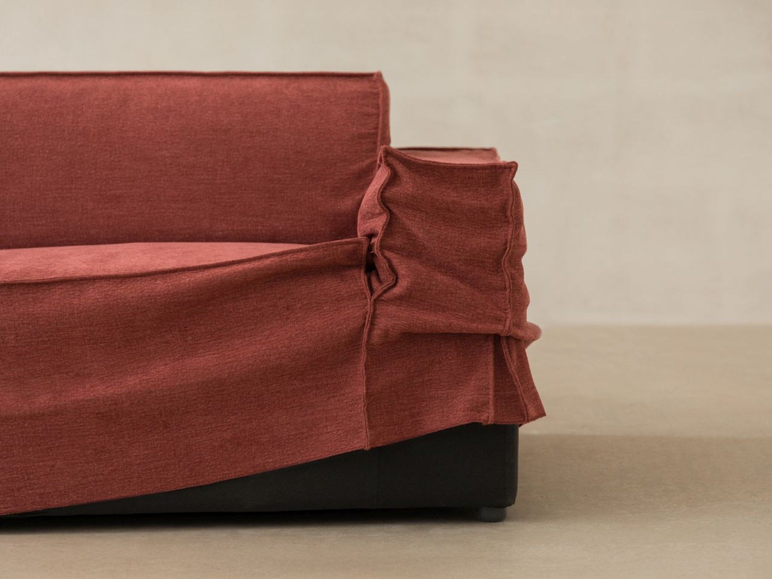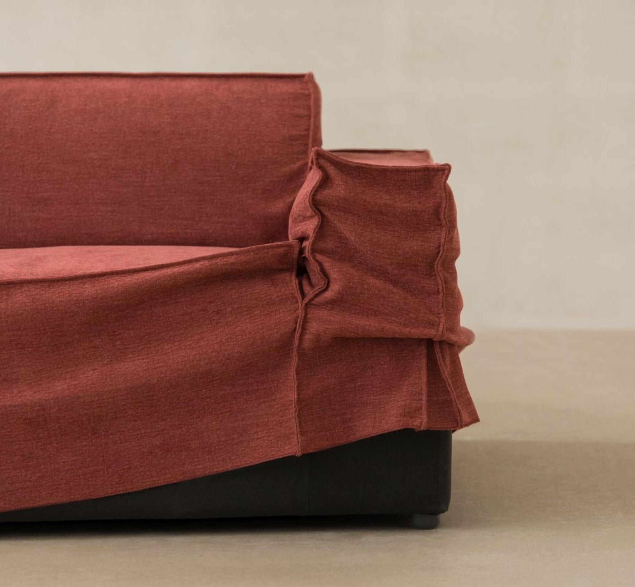 Les housses, en tissu à effet lin, sont parfaitement adaptées à la forme du canapé. Disponibles pour les modèles complets ou pour chaque module séparément.