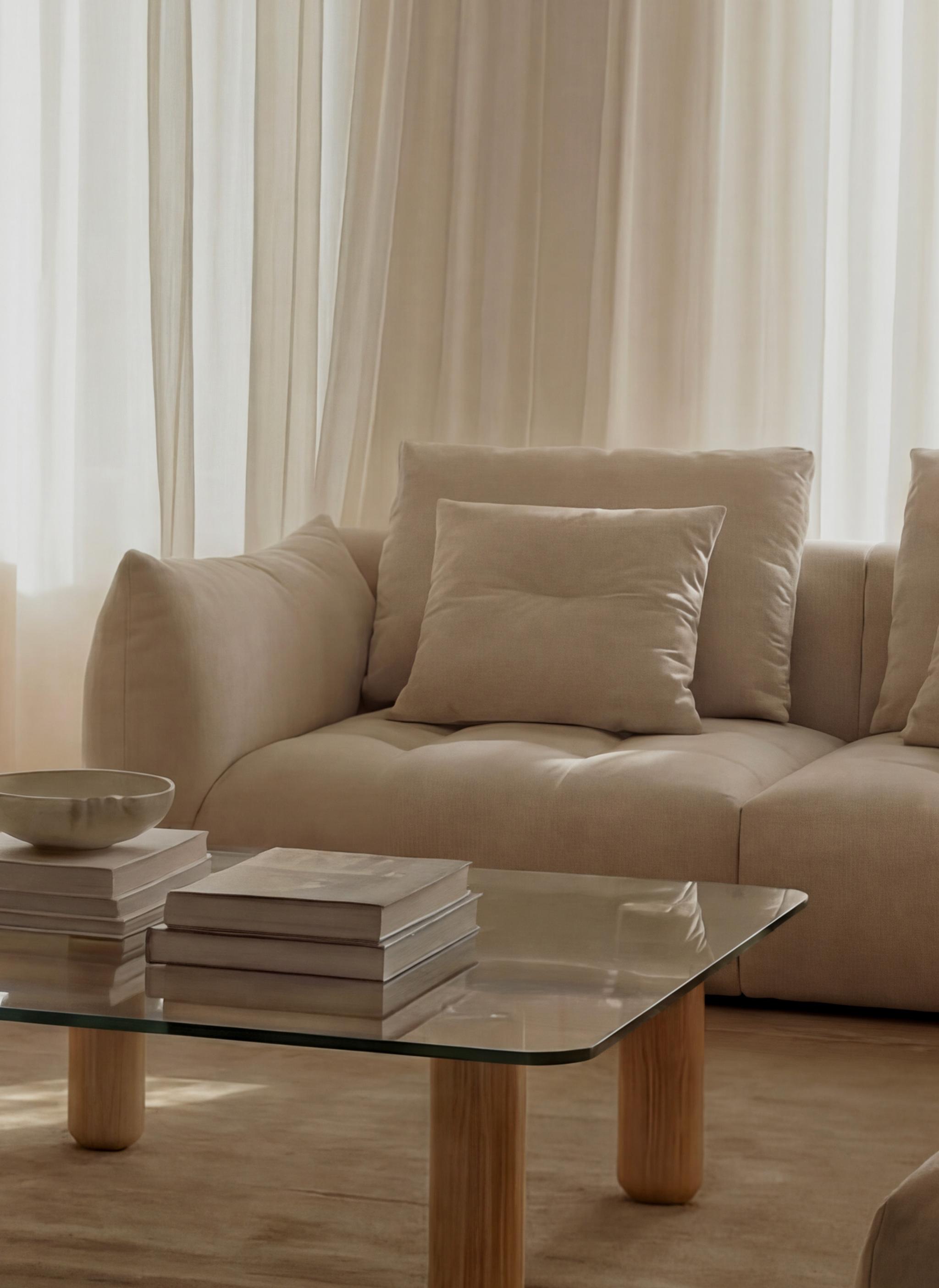 Canapé 4 places en velours, tissu structurel ou bouclé, 243 cm
