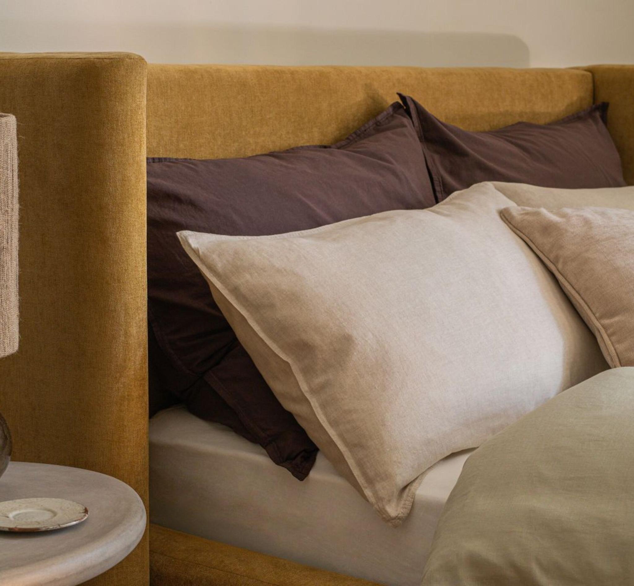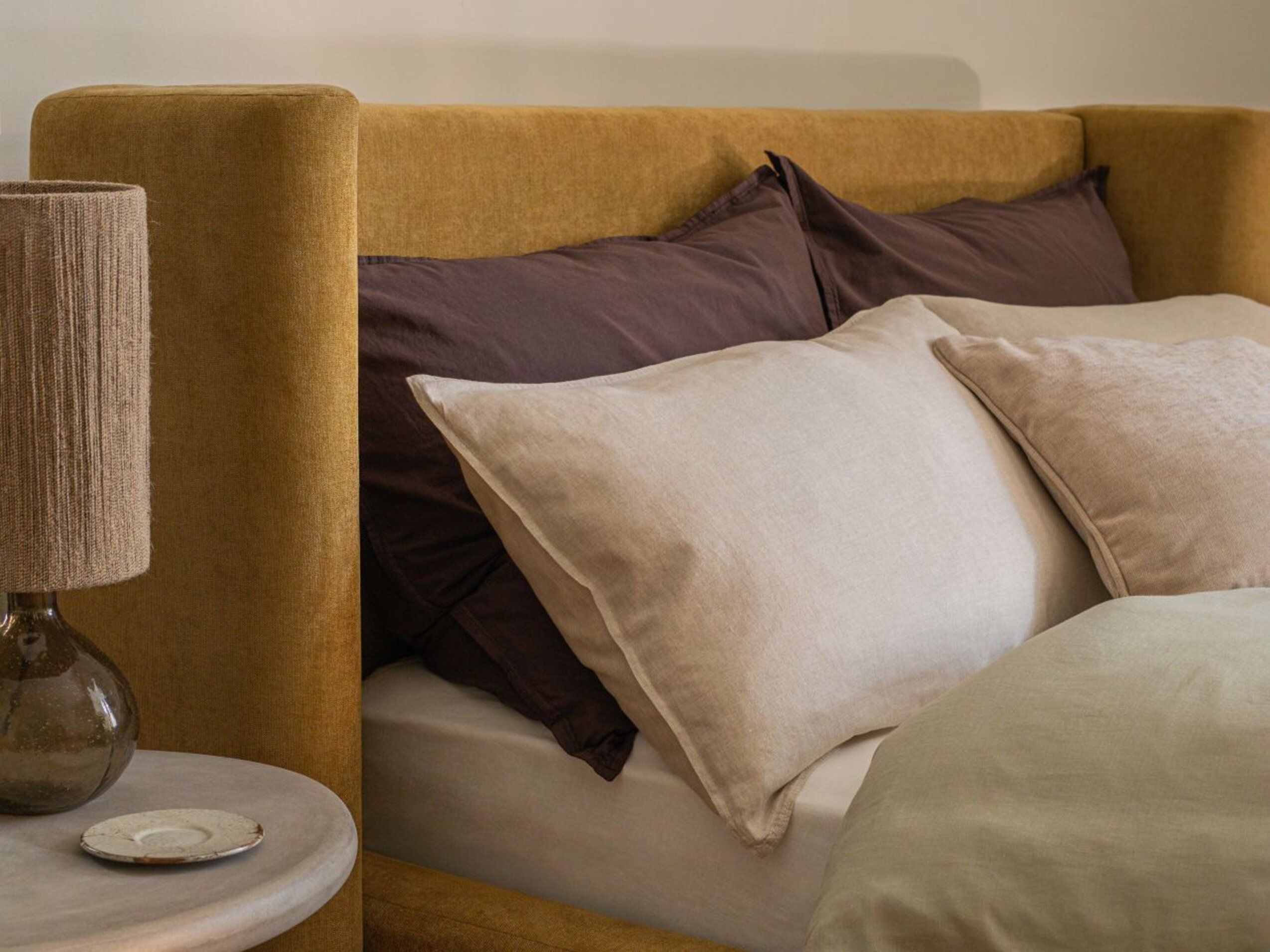 La tête de lit avec ailes latérales procure intimité, confort et soutien. Ses lignes douces incarnent le minimalisme et l’élégance authentique.