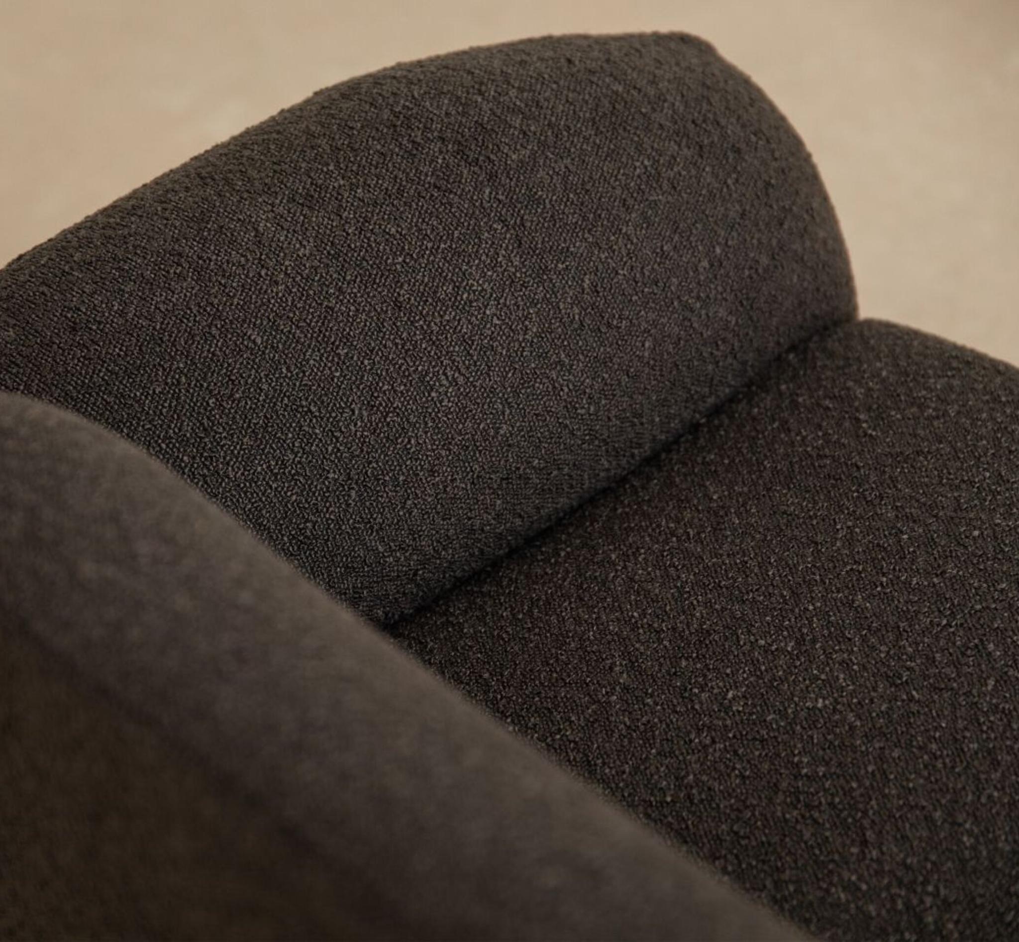 Le canapé présente une silhouette arrondie sur des pieds hauts et fins, facilitant le nettoyage tout en ajoutant une touche de légèreté et d’élégance.