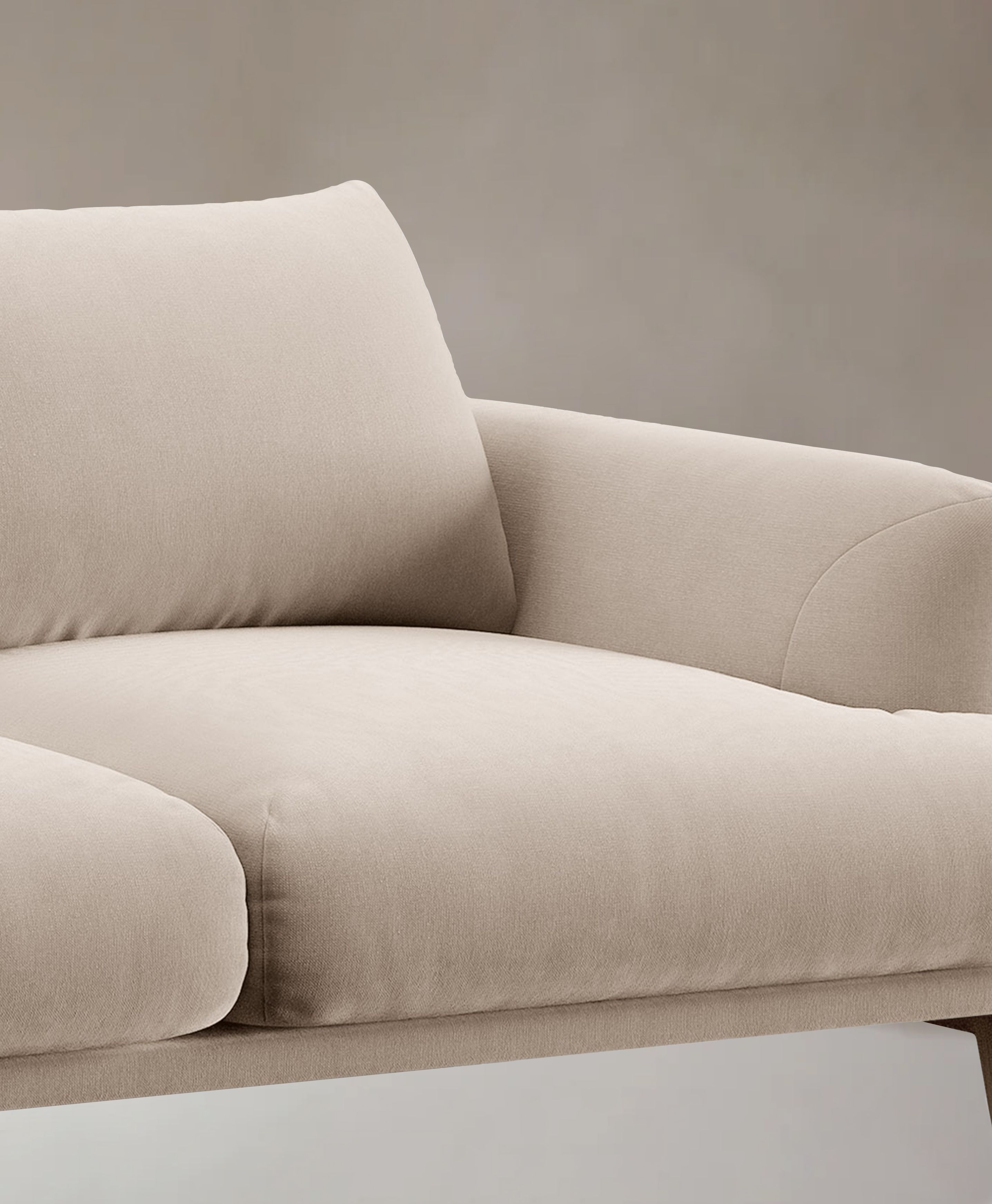 : Canapé deux places Micadoni Ada en tissu beige, accoudoirs arrondis, dans un salon lumineux.