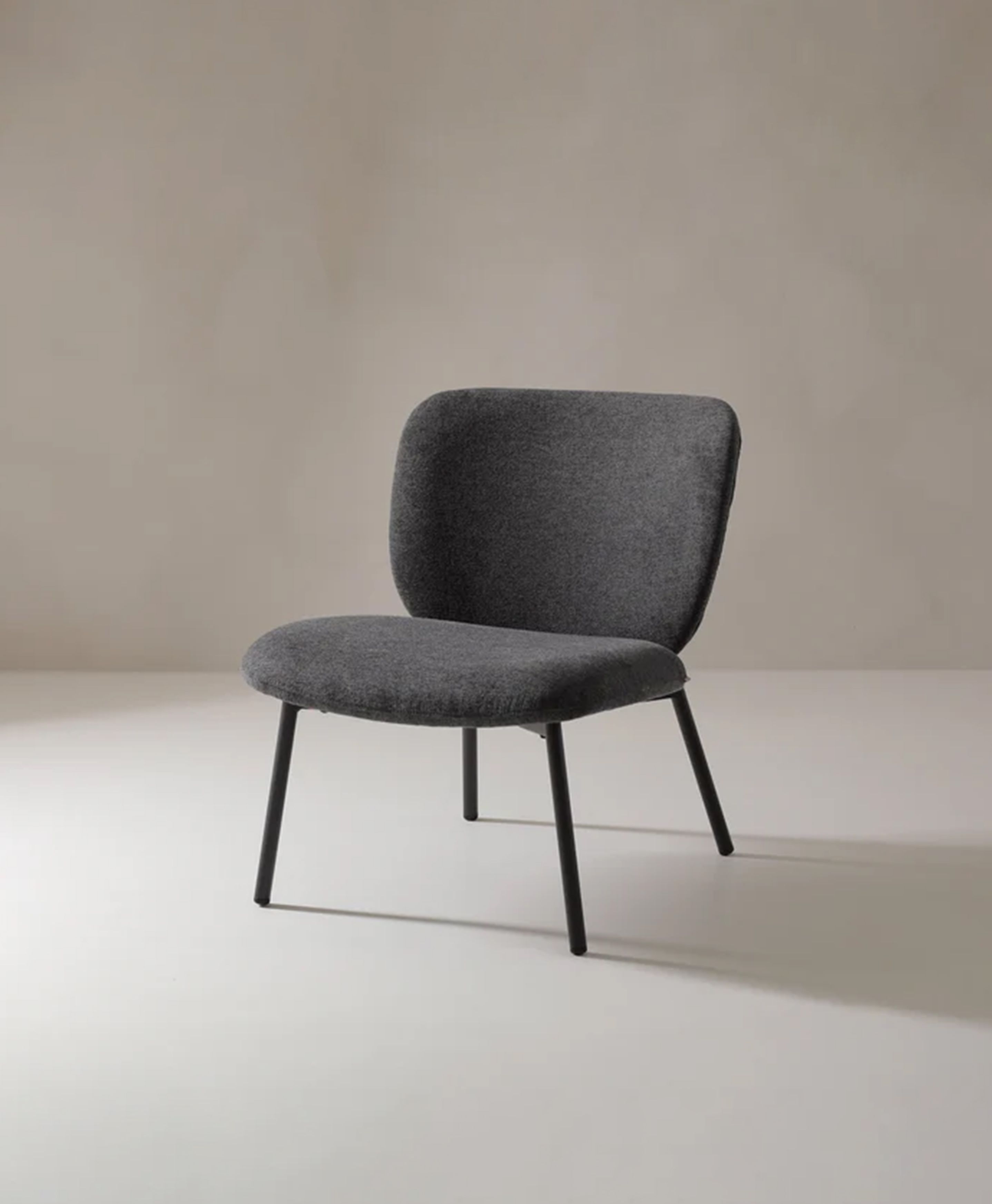Canapé Molino en tissu gris texturé avec lignes arrondies et silhouette minimaliste – mobilier Micadoni