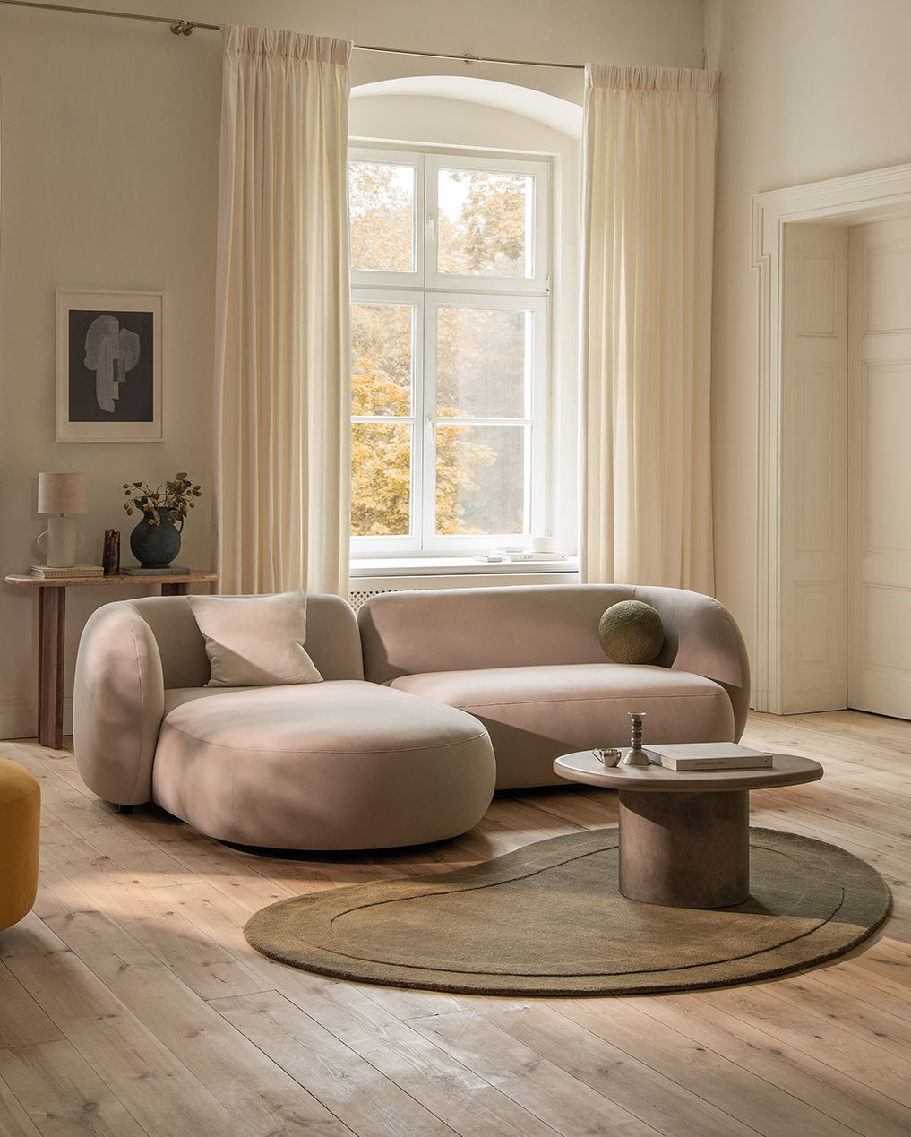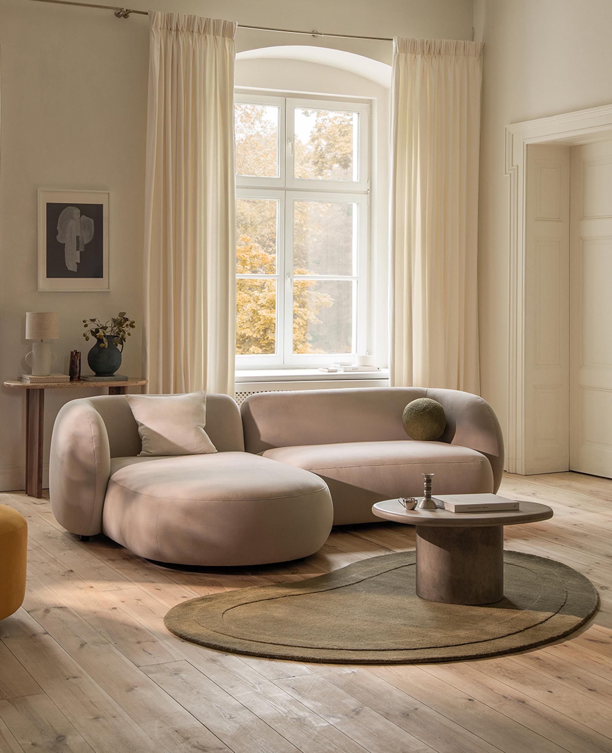 Pour un style enveloppant et chaleureux, Lupine se distingue par ses silhouettes arrondies, ses bords doux et son capitonnage élégant, avec une touche légèrement futuriste. La collection est également modulable, d’un canapé 2 places compact à de grands canapés d’angle, des compositions en L et des configurations plus généreuses. Les coussins offrent un confort mi-souple avec un bon soutien, et certains modules peuvent servir de lit ou de lit double pour recevoir.