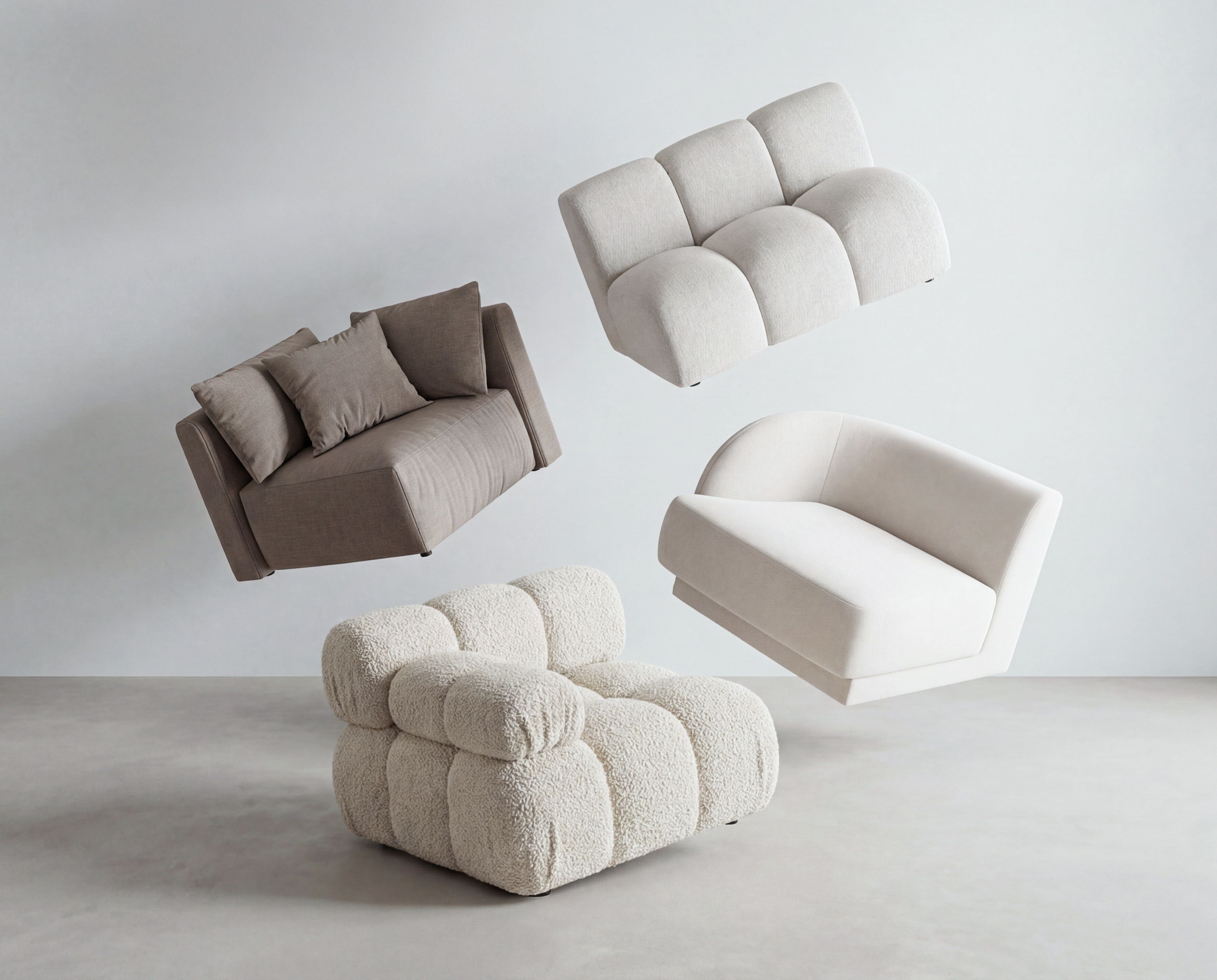 Si vous cherchez un rendu plus audacieux, Bellis apporte des formes sculpturales d’inspiration rétro, avec une modularité totale. Vous pouvez composer un canapé 2 places, un canapé d’angle cosy, un canapé en L ou un grand canapé modulable type panoramique/sectionnel. Les connecteurs dissimulés facilitent les changements de configuration tout en maintenant les modules parfaitement en place. Certains modules intègrent une fonction couchage, sans compromis sur l’allure.